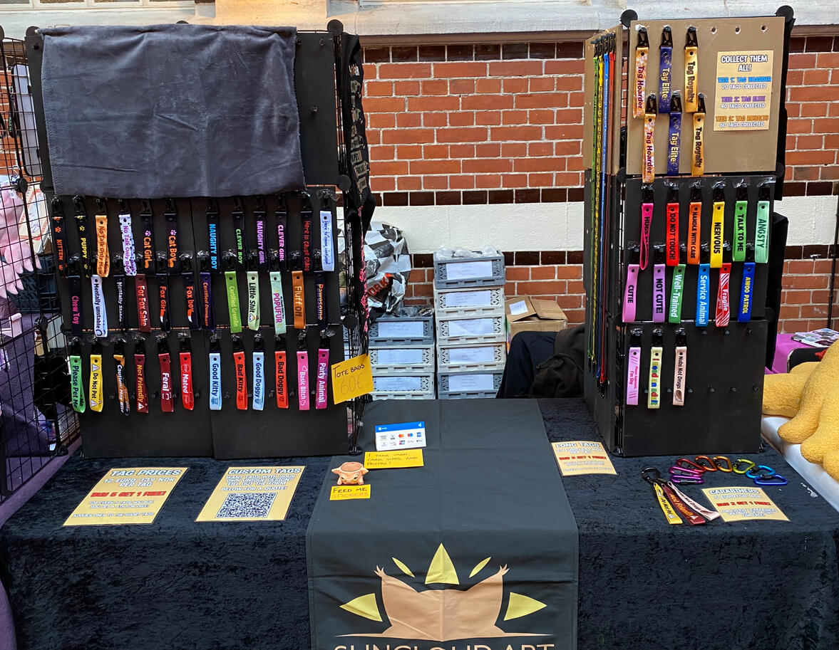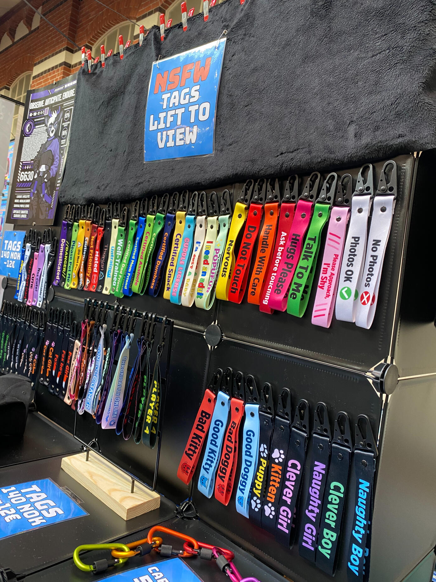 Custom tag commissions with con pick-up are also offered via social media, and attendees are offered the option of ordering custom tags at the convention with post-con completion