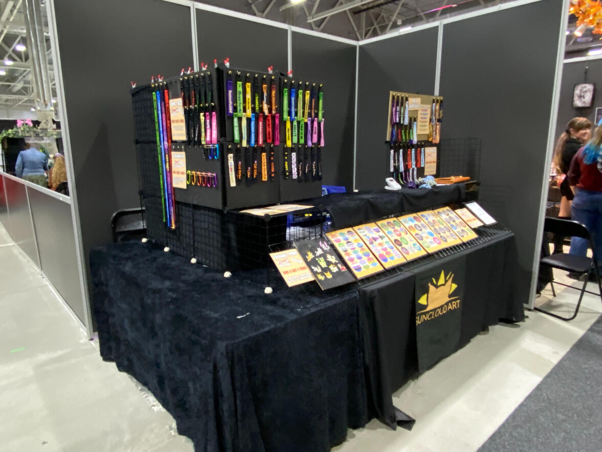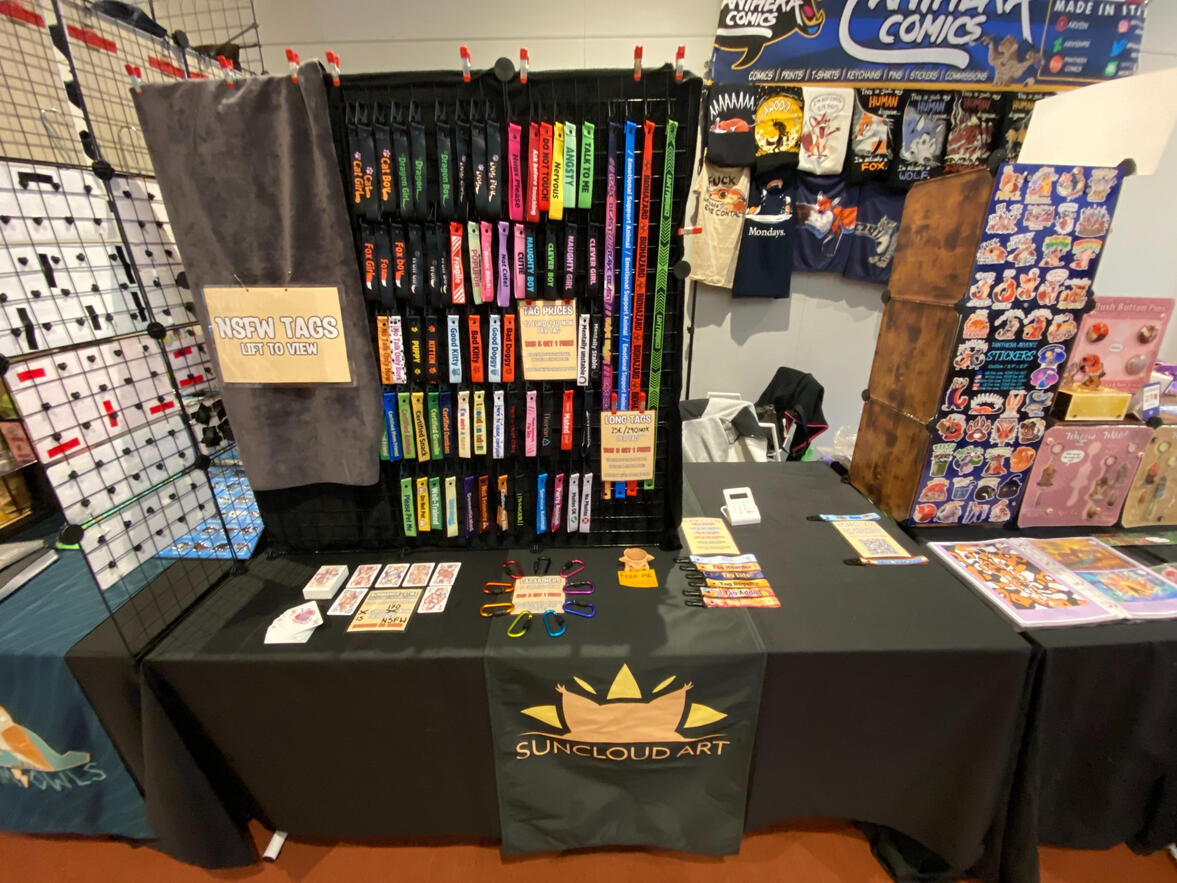 Merch and information about Suncloud Art's Dealer’s Den application.Suncloud Art has been dealing at conventions since 2022.